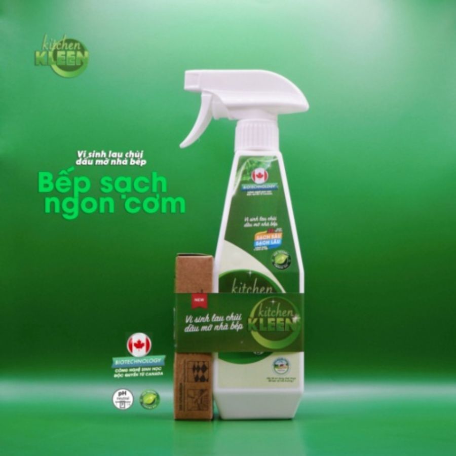 👉Công nghệ sinh học tiên tiến: Kitchen Kleen ứng dụng công nghệ sinh học từ Canada, với thành phần chứa vi sinh đặc biệt giúp chuyển hóa dầu mỡ thành nước, dễ dàng lau chùi.