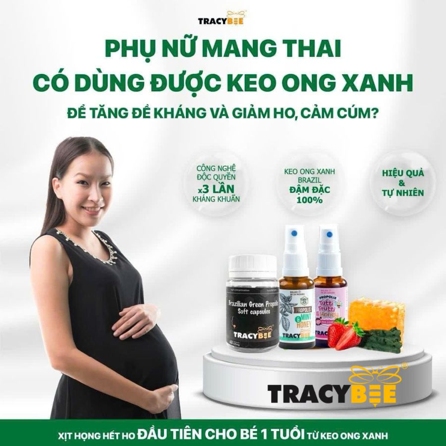 Phụ nữ mang thai hoàn toàn có thể sử dụng keo ong xanh. Tuy nhiên, trong giai đoạn thai kỳ, cơ thể của mẹ bầu sẽ có những thay đổi nhất định, đặc biệt trở nên nhạy cảm. Để an tâm khi sử dụng, Tracybee khuyến khích các mẹ nên tham vấn ý kiến bác sĩ để kiểm tra xem mình có dị ứng với thành phần nào của sản phẩm.