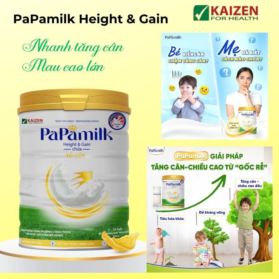 1.Tên sản phẩm: Papamilk Height and Gain Sữa Non 24H chứa Tổ Yến – Tăng cường kháng thể, con tăng cân, tăng chiều cao vượt trội Lon 830gr