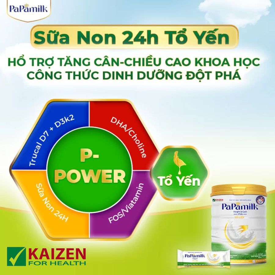 Papamilk Height & Gain Sữa Non 24H chứa Tổ Yến là sản phẩm được ra đời với sứ mệnh đồng hành cùng mẹ nâng cao tầm vóc cho con.