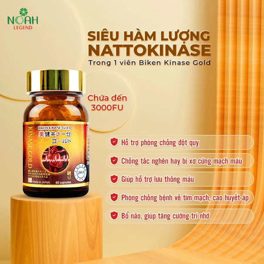 ✨ Biken Kinase Gold – Viên uống hỗ trợ phòng ngừa và hỗ trợ điều trị đột quỵ đến từ Nhật Bản, chứa hàm lượng Nattokinase tách K2 chuẩn JNKA, dầu tía tô, quercetin, DHA và EPA, giúp: