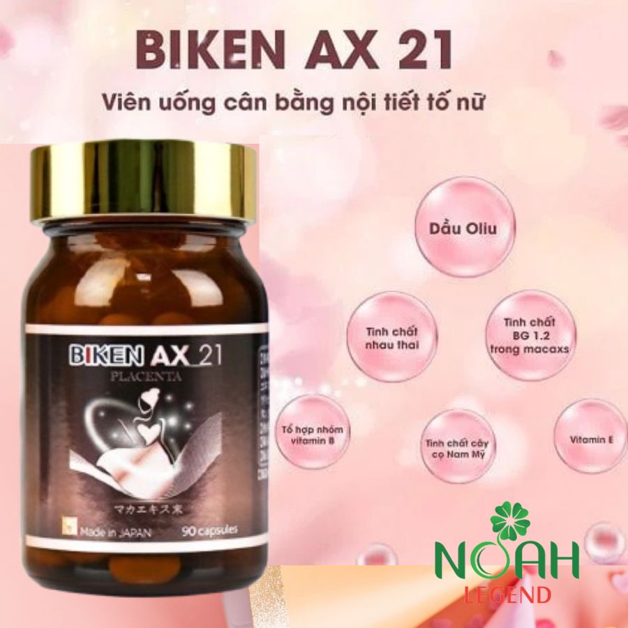 Viên uống nội tiết tố Biken AX 21 Placenta có công thức vô cùng độc đáo giúp ổn định nội tiết tố, làm chậm quá trình lão hóa, giảm các chứng rối loạn kinh nguyệt, tiền mãn kinh,... ở phụ nữ.