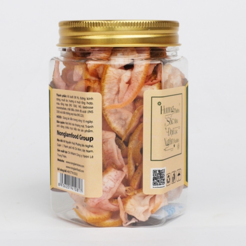 1. Tên sản phẩm: Vỏ Bưởi Xí Muội Sấy Dẻo Hũ 100gr