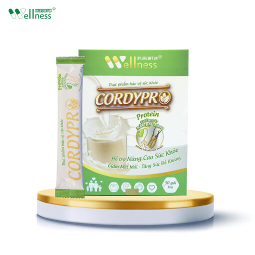 Thực phẩm bảo vệ sức khỏe Cordypro là sự kết hợp hoàn hảo giữa Protein thực vật và Đông trùng Hạ Thảo, cung cấp nguồn dinh dưỡng thiết yếu giúp tăng cường sức khỏe hệ miễn dịch, giảm mệt mỏi, xây dựng cơ bắp, cải thiện sức khỏe tim mạch và kiểm soát cân nặng… Đây là sự lựa chọn lý tưởng để bảo vệ sức khỏe gia đình bạn.