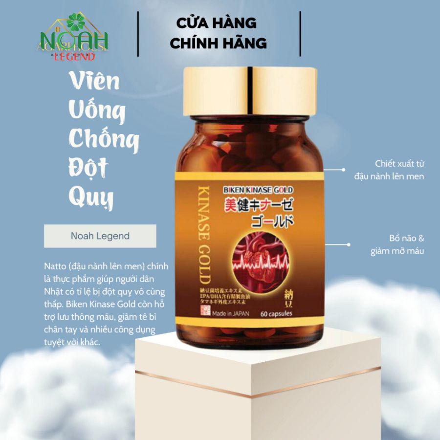 ✨ Biken Kinase Gold – Viên uống hỗ trợ phòng ngừa và hỗ trợ điều trị đột quỵ đến từ Nhật Bản, chứa hàm lượng Nattokinase tách K2 chuẩn JNKA, dầu tía tô, quercetin, DHA và EPA, giúp: